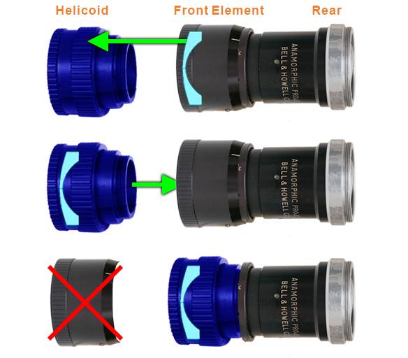 Hi Rich - Thank you for your response!!! This certainly seems like a more affordable solution than finding a machinist to fabricate a new front element. I made the following diagram to make sure I understand the process: Transfer the glass from the B&H front element to a suitable helicoid (using step/filter rings as needed).The helicoid with the B&H glass then replaces the old front element and is joined to the rear assembly.The old front element is not needed and can be stored in case it's ever required again.Is this correct? If so: Which kind/brand of helicoid did you use (or would you recommend)?Will the helicoid require any adaptation or modification to join the rear assembly of the B&H?Which kind of step/filter rings did you use (or would you recommend) for the glass? If you're able to go down to 58mm on aps-c with little or no vignetting, what would be the shortest lens usable on m43? 40mm-ish?And the million-dollar question: Since the B&H is doing the focusing and not the taking lens, can it be used with a parfocal zoom?Thanks again for the info, I'm excited to reach the point where I can start putting this modification together and share some test footage. if anybody else has anything they can share, it would be hugely appreciated - I'm hoping to consolidate enough info to add back to the Anamorphic Lens-opedia. Cheers, |. . | .|1 point