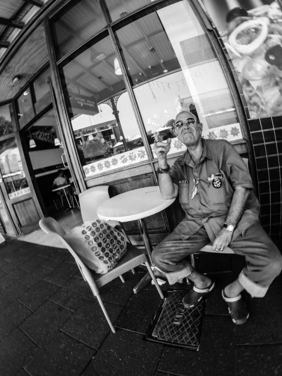 I'm not so naturally bold, but have pushed myself and gotten some interesting images. I even did some using a GoPro in one of the burst burst modes (10 photos over 2 seconds IIRC) and getting super close, which is easier because the camera is so small. A few GoPro street photography pics.... and this one was taken at about two to three feet from this guys face, but looks much further than that because of the wide angle: Any camera can work if you put interesting things in front of it and put in the time...3 points -