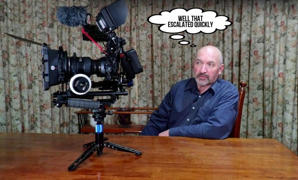 I think for me its got enough off screen controls to be usable with a loupe but certainly a flip up loupe would solve it. Not that its a problem that should have needed solving to be honest. The justifications for some of this stuff being related to the price of the camera are a bit of a double edged sword in my opinion as lets go absolutely wild and say a tilting screen would have added £100 to the price of it, would anyone have baulked at a price of £1200 instead of £1100? I seriously doubt it, particularly as to correct the issue it causes is going to cost a lot more than £100 And its not like BM haven't got experience of how awkward it is shooting handheld with a camera that has a large fixed screen even when its on a rig. So to use this camera handheld you are going to have to have a rig of some sorts (and still have a strain because of the size of the screen affects the mounting position as in this pic and every other pic of someone using a BMCC without an EVF) or hope someone comes up with a 5" loupe. All for the sake of a tilting bracket and some cable that we all would have happily given them a tidy bit of profit on. In reality, this camera isn't a boosted up version of the original Pocket, its actually a slimmed down version of the Cinema Camera/Production Camera. The Canon DSLR battery grip modification was something that I was thinking about but the heat coming off the bottom if you don't have free space underneath it would concern me. I had it sat on my desk switched on for about 30 minutes yesterday and the area around the tripod mounting point was pretty hot to the touch.