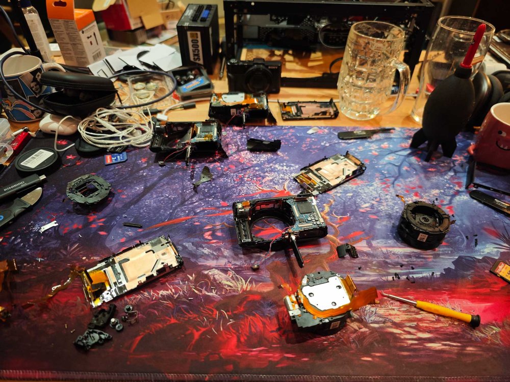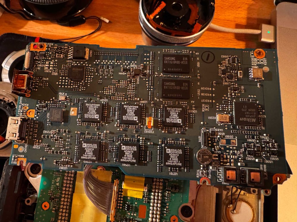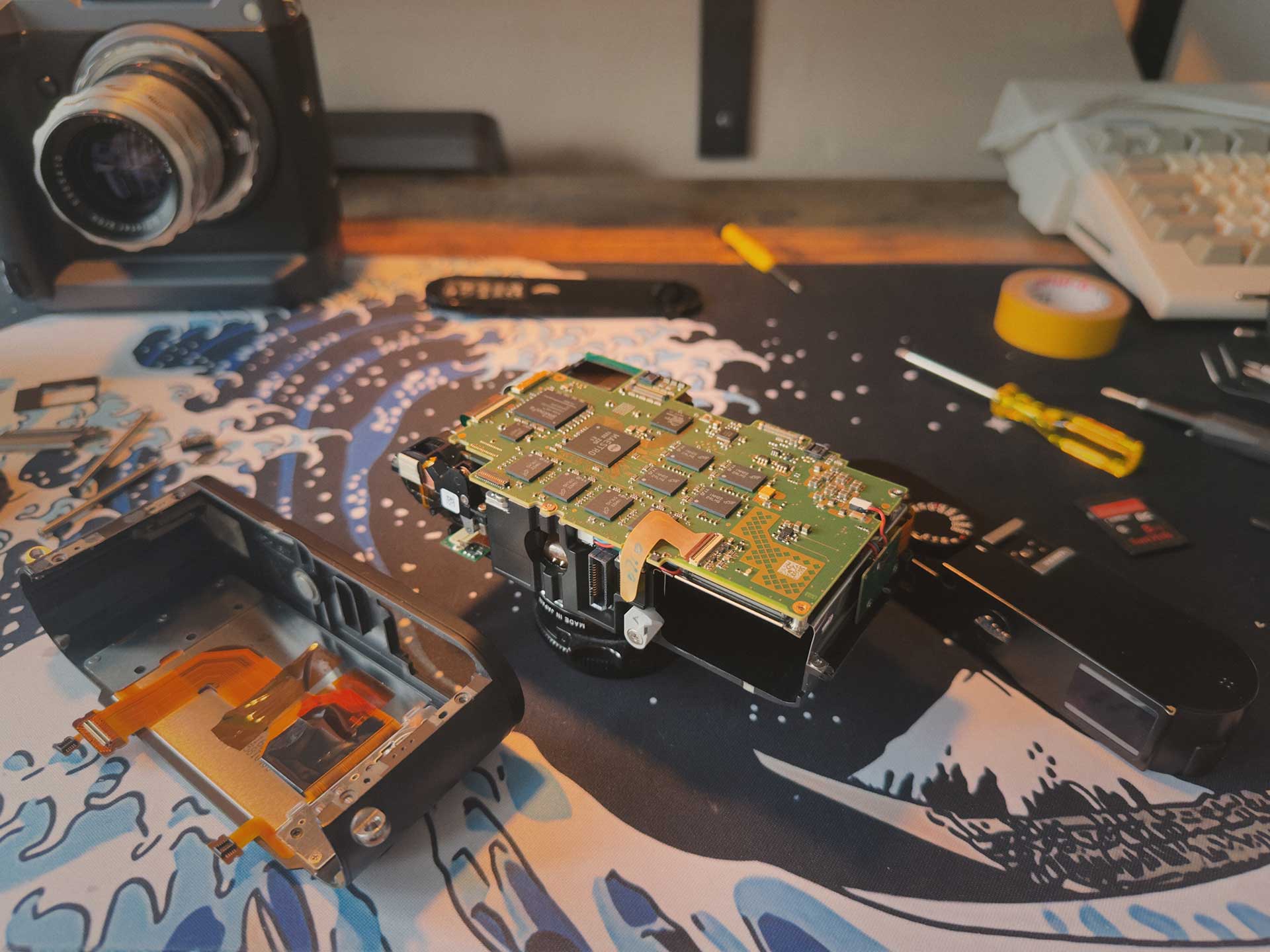 3. Leica M Typ 240... 2012, this was before Panasonic got more involved with making Leica's stuff. I'll give this a 10/10. The whole motherboard slides out really easily. I baked it in the oven to bring it back to life from completely dead. The solder needed a reflow apparently. 200 degrees C at 7 minutes did the trick. Custom chips all over the place. Utterly beautiful mechanically and in terms of the quality of connectors, cables, lots of metal parts and brilliantly designed internals. Next up another older camera, Nikon D700. Very impressive motherboard with separate analogue to digital converters. Probably why the colour science still has the edge on the newer sensor designs with their inline on-chip A/D. Nikon own branded chips. By contrast in the newer Leica Q... It's actually a Samsung. And the lens relies on a LOT of digital correction, so it's certainly not in same league as a Leica M when it comes to the quality of parts or optics. End result in terms of the images is very nice though. We'll call it the Samsung Q. Onto Fuji now and I have fixed an X-Pro3 and the old X-Pro1. The original had a lot of Fujifilm's own CPUs inside. It's very well made but has a lot of traditionally soldered wires on the mainboard, old-school style. This continues with some of the newer models too. X-Pro3 was an easy fix, a ribbon cable (FPC) had come loose where the sensor plugs into the mainboard. Some tape over the socket had shrunk in the heat and pulled it ajar. Pictured above is the X-Pro1 circuitboard, it's more proprietary whereas X-Pro3 looks a bit more generic on the inside. Here is an oven bake of a Panasonic LX15 mainboard... The components can withstand very high-heat and usually cold solder joints are responsible for a wide range of issues. Unfortunately in this case I made a mistake with the stop watch and the card slot fell off šŸ™‚ Here is a sensor with hot mirror... the IR cut filter glows pink in this shot. If you remove it you get an IR capable camera and can also shoot normally if you add the IR cut filter to the front of the lens instead. I think this sensor is from my Lumix LX100 II or could be Sony RX100, I forget šŸ™‚ Now onto Sony and their smaller cameras are too tightly packed. FPC cables develop cracking over time as some of the metal is folded and bent too tightly to fit the smaller bodies. This is an RX100 and it's very common to see these fail on the cable that connects the lens. A relatively easy fix actually and replacement FPCs are $5 on Aliexpress. But I don't rate Sony's quality as highly as Fuji or Panasonic so far. Onto Canon and I have had a very bad experience so far with their modern cameras. The DSLRs were much better made (i.e. 5D Mark III which was easy to tear down and remove the OLPF back in the day!) They use extremely fragile FPC connection sockets and the ribbon cables themselves are brittle and cheap. Sometimes a few bends and they tear. Doesn't make for a stress free repair that's for sure. In contrast to Panasonic, with the lovely GX80 it's in a different league and take a bit of extra abuse by an amateur repairer. I've done a lot more than what I have time to post today but probably will do a deeper look at stuff for YouTube or the blog. I rate as follows the brands then... 1. Leica (the extra cost is noticeable on the inside) 2. Panasonic (they know how to sensibly build a camera and logically lay out stuff, and they don't scrimp on component quality) 3. Fujifilm (high repairability score and robust, sensible designs) 4. Nikon (high repairability but many of the newer cameras not up to high-standards they set during DSLR era) 5. Sony (they try to pack in too much) 6. Canon (really quite terrible, cheap cost cut components, and badly laid out) Stay tuned for more. I do this just for fun, and really enjoy it. Plus now I have a oven baked Leica 240 to play with šŸ™‚