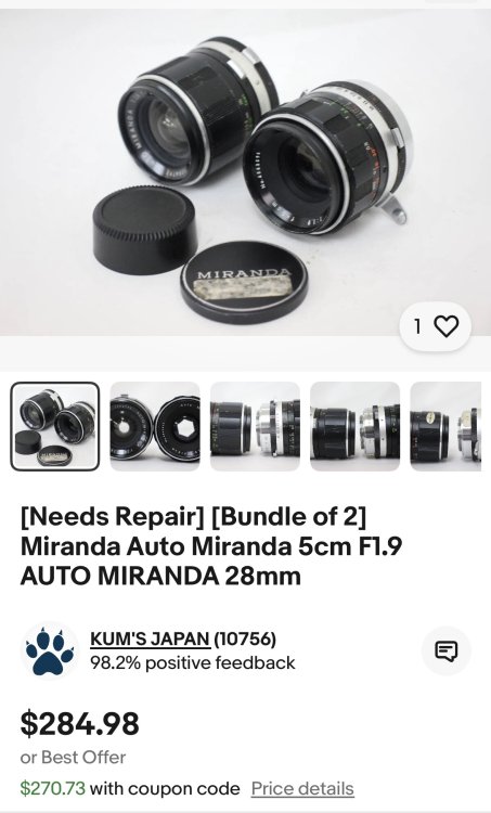 24. Wow, I think that one speaks for itself. I actually just made my first ever purchase from Buyee. The lens was not well photographed or chronicled, but it was listed for a price that I couldn't pass it up. I think one of the things that has stopped me in the past is that I didn't know what the shipping fees would be, and now the tariffs are an x-factor as well (I read 17% a few days ago, but who knows). But for $30, it seemed like an experiment worth trying.
