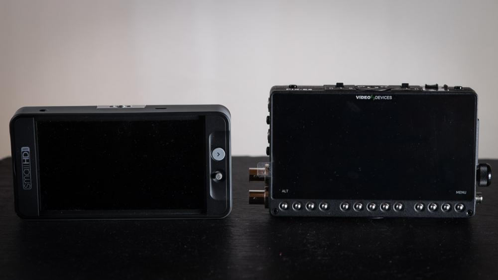 Hey guys, I'm not sure anyone cares, considering that these are two quite different creatures, but while I have both the SmallHD 501 and PIX-E5 still here I made a rough comparison between the two. Quick upfront comment: the SmallHD 501 is a pure field monitor while the VideoDevices PIX-E5 can record in ProRes to a Speed Drive (a mSata SSD in a proprietary USB3 case). I have only tested the monitor functions and not the recording. If you're looking for an alternative to a Shogun or Odyssey you will want the PIX-E. The SmallHD 501 allows to attach the sidefinder attachment, turning it into a not perfect but good EVF. As most know, both of them are field monitors with 5 inch 1920x1080 pixel IPS screens. Both of them run on dual batteries so you can hot swap during use, the SmallHd using the ubiquitous Canon LP-E6 while the PIX-E5 takes the just as common Sony L batteries. Both monitors have a lot of exposure, focus and framing helps and can load LUTs from a SD card, a great feature to separate them from the cheaper low budget offering when shooting LOG profiles. So far with the similarities, I'll go a bit deeper on the specific stuff and differencies. Models and operation: The Small HD 501 is the cheaper 500series model, lacking the SDI in- & outputs that the more expensive SmallHD 502 brings, otherwise boasting exactly the same features. There's also more expensive 7 inch models. The SmallHD operates completely over the joystick plus back button, you'll won't have smudges on the screen like with a touch screen. The VideoDevices PIX-E5 is the more expensive 5 inch PIX-E due to the SDI in- & outs, there's also a cheaper PIX-E5H that only has HDMI . Just like with SmallHD, VideoDevices also makes a 7 inch model. While the SmallHD has a very minimalist operating approach, the PIX-E5 on the other hand features a twist & push know on one side, 13 buttons on the front and touch screen in addition. I'd give the point here to the PIX-E, it's just more pleasant to set up and toggle the functions. Operating system logic: The 501 offers a page logic. You can create multiple pages that you set up with the tools of your choice (in whatever combination you need) and then just left-right jump with the joystick between the pages. So you might have one page with all your tools to set the right exposure and then the next page with your framing guides and focus helps. Nifty. On the PIX-E5 you can activate and deactivate the different tools with the buttons on the bottom of the screen, configure them by holding the button. Works easy and quick, especially on combination with the touch screen. I'll give this point to the SmallHD. While I think setting up the tools is quicker on the PIX-E, you only set them up once and then toggle between pages on the 501 while you would always turn tools on and off on the PIX-E. But this is by a hair, I think both is perfectly fine, might be a draw for others. Exposure tools: Both have configurable zebras, false colour, histogram, waveform and vectorscope. They feel slightly laggy and pixelated on the PIX-E but that's nit picking. A clear draw. Focus tools: They both have colored edge peaking in configurable strength and color. The 501 features additional edge sharpening that emphasizes in focus edges so it's really easier to pull focus directly from the full screen video without the distracting peaking colors. It works quite well in my opinion and is better than colored edge peaking when using a nice big 5 or 7 inch monitor. The PIX-E5 features a cool zoom function to punch in on the picture via touch screen, you can even move the zoomed frame area. Which is better? It depends. For me I'd say the full screen edge sharpening is better for run & gun where you want to keep an eye on the whole frame while the great punch in is good when shooting from sticks or in a more narrative setting. Inputs & Outputs: Both feature HDMI and SDI depending on the model as well as doing loop through. The point goes clearly to the PIX-E5 though as it has 4k via 6G SDI and HDMI while the Small HD only does FullHD. In addition the PIX-E5 can do FullHD up to 120fps (not that most consumer/prosumer cameras would even give that out, they only do it internally). Image lag: I've tested this point because a lot of people complained about the image lag of the PIX-E5 with roughly 5 frames of delay. VideoDevices really improved this a lot with the last firmware updates. Both monitors show a comparable amount of delay connected via HDMI to a Samsung NX1 or Nikon D750. If shot the camera screens and monitors with the iPhone in 240fps and both monitors lagged roughly the same behind the camera screens and reality. Keep in mind that if you do loop through, there will be additional delay. The SmallHD won't work on the NX1 but it works when looping through the PIX-E5 (makes you wonder how SmallHD is incapable to fix this if even that is enough?) but obviously it will lag even more then. This is probably only relevant for the people who want to run multiple monitors/recorders on one camera to have separate view for operator and focus puller (and director). Recording: DUH! PIX-E5 because the SmallHD 501 is no recorder. In addition the PIX-E5 comes with the PIX-LR module to high quality audio features such as phantom powered XLR inputs. Weight and size: The SmallHD 501 is smaller by quite a margin, I didn't measure them but you can see it on the picture or look it up in the tech specs. The SmallHD 501 weighs 205g without batteries and 365g with my two aftermarket LP-E6. These bring 2000 mAh each. The VideoDevices PIX-E5 is 450g without batteries and reachs 635g with two aftermarket NP-F550 (2900 mAh each) or, if you need a lot of juice, 1050g with two NP-F970 (7800 mAh each). We don't have to discuss this, it's clearly in favor of the SmallHD 501. This was when using them as pure monitors, if you add the Speed Drive to record to the PIX-E5 will get even heavier. So when shooting with a A7s with a vintage lens, the P