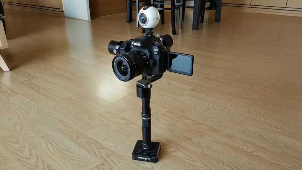 I always wondered what the results would be if someone bothered to put a light 360 camera on a camera's hot shoe that was stabilized on a gimbal. This is the rig I wish I had on my honeymoon, unfortunately we didn't have these options a year ago. Now that I've got around to it, I would like to share the results. Gear: Gear 360 Canon 80D (I recommend a taller camera over a mirrorless. Also, lighter camera won't always work out in your favor if the rig is top heavy which makes the 360 camera prone.) Zhiyun Crane (I tried something very similar with my Pilotfly H1+ GH3, and a GoPro Hero 3, and it was too shaky as the motors was not strong enough). The Zhiyun Crane with the 10-18 STM lens had no problem with the Gear 360 on top. Note: The edelkrone TILTHEAD is only there as rudimentary stand and more importantly a counterweight to balance a top heavy rig. Somehow adding a lot more weight to the bottom makes it much easier to hold for longer periods. Results: It stabilizes very nicely. In fact, when the 360 camera itself is placed on a table that is not perfectly level, the stitching doesn't seem to align that well, but when on a gimbal, it's always holding that perfect longitudinal (roll axis) level, even during movement. If you can get a taller coldshoe mount than the one I'm using (without making it too top heavy), that would be much better. As high as it is, the gimbal is very apparent in the shots if you look slightly down. Premiere Pro has tools to work with 360 videos now and lets you pull normal looking 2D shots in the NLE. And even though the the quality is much better than I expected from the YouTube videos online, the video quality still has a long way to go. The 2D frames offer less quality than a HD (720p) camera would provide. Still useful for something like a vlog. Currently, 2 cameras are being recorded and stretched on a 4K file. I think we need to have at least 8K (maybe more) to match the 2D image quality from a GoPro. Other notes. As you might have imagined, having a big ball on top of your camera will limit the movement of your gimbal slightly. You cannot extend your camera outwards with the camera facing out as the Gear 360 would make contact with the roll axis motor. Also, keep in mind, unless you are willing to hold this above your head, your face is always in the shot, which may be undesirable.1 point -