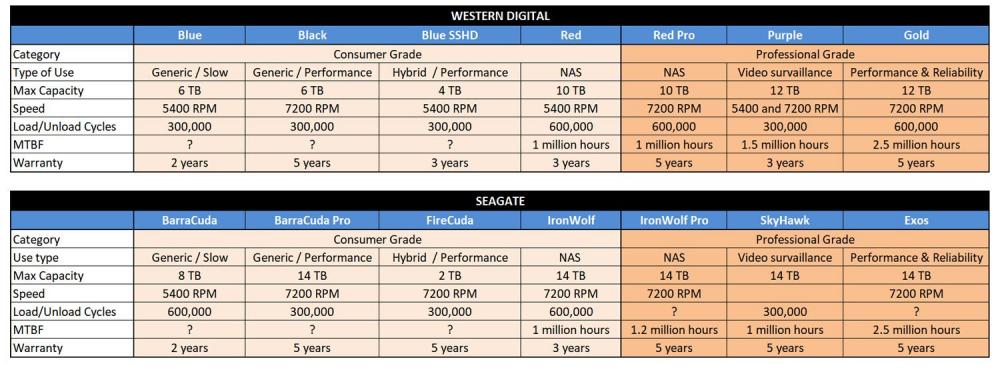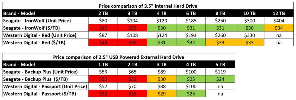 There isn't much options, the 3 majors brands left are seagate, WD and Toshiba. All about the same in terms of performance and reliability (check blackbaze stats on its website). So far the largest HD are in the 12-16 TB range and the price per TB doesn't lower beyond 3-4TB. We are reaching the maximim size and nothing should change until next year when WD and Seagate will introduce HAMR and MAMR. As for speed, you should get a 7200rpm but the best is not to use HD for editing, even mounted in Raid 5. Here are some comparison I made of actual price and product range2 points