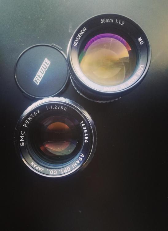 I may be going full retard on F1.2 lenses. The Pentax has been my workhorse-fifty for the past few months, it's served me well, but it has a few glaring issues, worst of which is the heavy green/red CA on high contrast areas. So, time for an upgrade. The Revuenon seems to do the trick, haven't seen any CA from my first tests with the UM4,6K and the bokeh is gorgeous. Seems a little sharper than the Pentax as well. Going to bring it along for a commercial shoot this weekend and see how it holds up.4 points