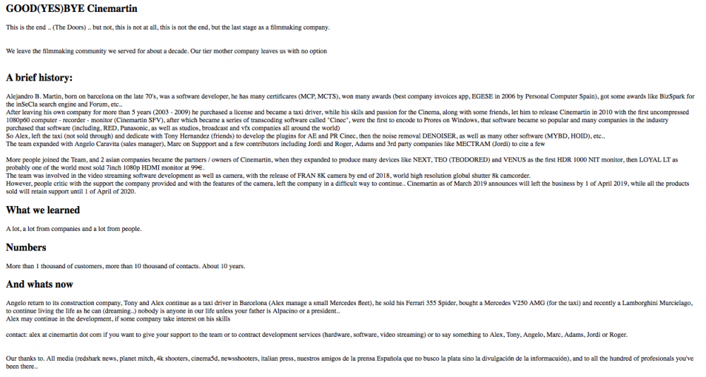 And then that whacko who drives around in a Lamborgini with probably the deposits or advance money of customers, posted a Private Chat between him an Bloom. It was So Freaking Shady (and abuse of any kind of gentleman's understanding). And then when people start pointing him out, he sneakily deleted the post with the chat. And his rant hasn't stopped yet. I've always found the company to be a bit of a Ponzi scheme. I saw many customers pointing that their products were Chinese re branded ones with grossly increased pricing. And this whole attitude outburst was shocking and absolutely unnecessary. https://www.newsshooter.com/2019/03/16/cinemartin-to-close-due-to-bankruptcy/#disqus_thread1 point