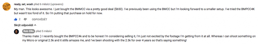 Definitely considering a Micro. For me right now though the Ursa Mini 4.6k seems like a great deal. Just saw one for $2500 on ebay. Quite expensive compared to a BMPCC but crazy cheap for what kind of cameras it can compete with.1 point -