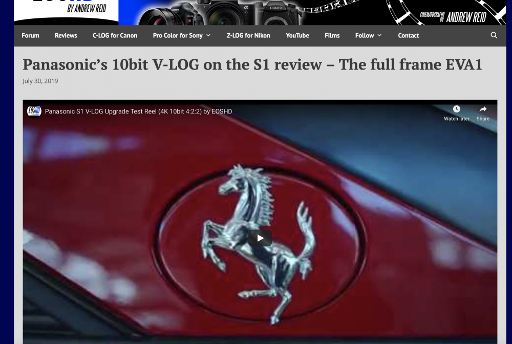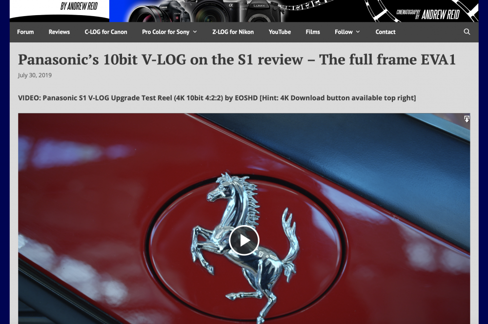 I agree with Andrew on this. VLog on the S1 is friggin' spectacular. It destroys the A7S, A7S-II, GH5, GH5-S and beats the FS7 with no trouble. Showdows are clean in VLog, even with noise reduction turned down to zero, there is so little noise even at 2000 ISO...even in pitch black night! (Thank you Panny for giving us actual noise reduction control!!!...I doubt Sony will ever allow that) My A7S-II used to be my "go to" low light camera but this S1 destroys it. The A7S-II's 8bit readout was always "splotchy" as Hell in the shadows and would clip the blue channel WAY to easily in SLog-3. The S1? No way,...its shadows are smooth as silk. Just super clean and highly detailed in VLog. V-Gamut protects each RGB channel beautifully too! Tell me: WHO'S SENSOR IS IN THIS THING??? CT P.s......4k raw over HDMI is coming. I have a good source on this.3 points -