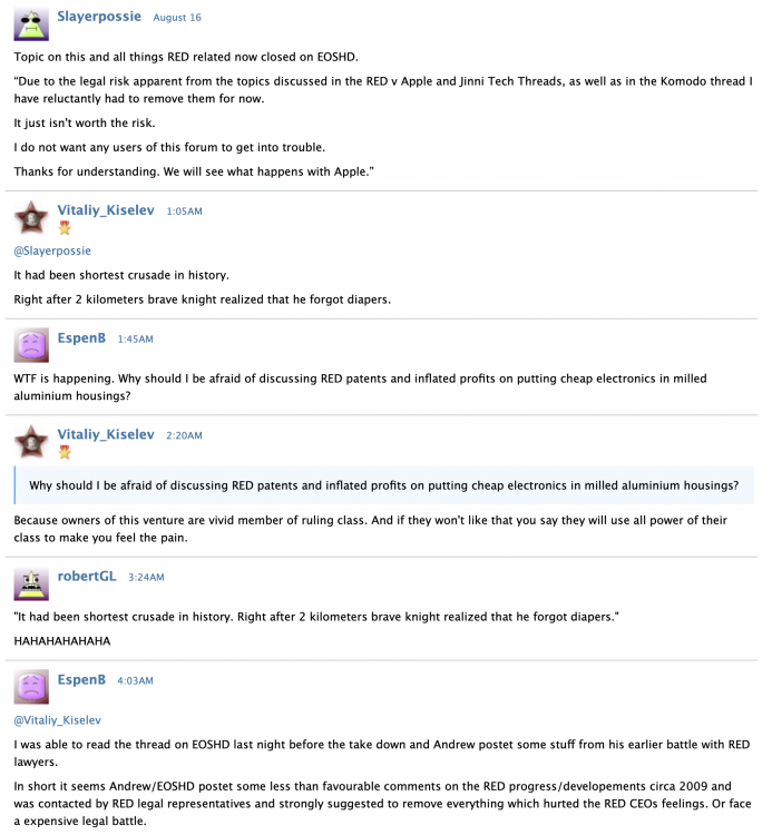 What I can say about compressed raw is: Stills cameras had a form of compressed raw already before Red made it version. https://www.photo.net/discuss/threads/raw-file-size-on-d70.95856/ I used to have a Nikon D70 and the Raw files were compressed. So what I try to understand is what makes the compression on a series of stills at 24 frames per second so different than the single images? It is the same single compressed frame just more of them. So In my view the patent should not have been granted. only the compression algorithm could perhaps have been awarded a patent. But if this was just a form of jpg2000 I don't see why they would even need to get a patent for that.1 point -