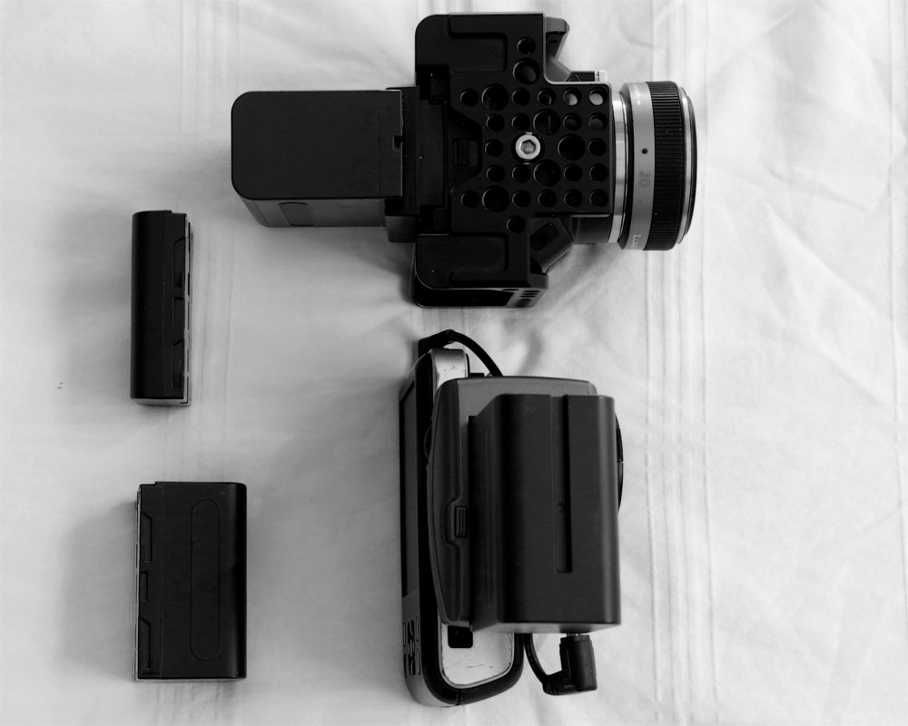I don't disagree with the overall issue with the internal batteries being poor but just as an FYI really, the BMPCC can use the usual cheap SmallRig NPF sled which mounts on the top hole if you did need to have a longer run time so I've took a quick snap of my cameras to show you the form factors. The overall package is much smaller depth wise with the BMPCC but at the expense of doubling the height of the whole package but this can be offset by using those smaller capacity NPF batteries which reduces the form factor. The additional big gain for keeping it small also comes in it having the integrated LCD and, much as I love the expansion capabilities of the Micro, having to wire the connector just to get a LANC start stop is a bit of a pain when the Pocket can have one plugged directly in. For travelling, this LANC grip, an EVF loupe and the two cheap tiny Panasonic collapsible zooms (the 12-32mm and 35-100mm) which both have OIS make it a pretty good modern day impression of an old school cine camera. The Micro wins for image due to it higher fps and lower rolling shutter and the expansion possibilities make it brilliantly customisable but the Pocket, for me, is more practical to do casual stuff with. One word of caution regarding what is a very cheap price for the one you are looking at, make sure you check the HDMI port works.2 points
