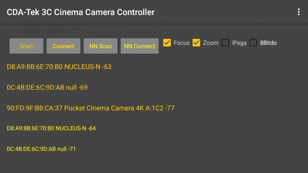 V2 of our 3C Cinema Camera Control App now includes support for the Tilta Nucleus Nano focus controller. The Nucleus Nano wheel connects wirelessly to the 3C app over Bluetooth LE and enables you to use the wheel to electronically control focus of your native MFT and adapted EF (with smart adapter) lenses on the Pocket 4K without using a motor. Electronic control of the lenses can be a big advantage when using the Pocket4K on a gimbal to keep the weight down or to keep any rig smaller and not require additional powering for the motors. In addition, it also circumvents issues that arise when using the motor with small native lenses that don't lend themselves particularly well to using focus gear straps and often have limited manual throw. It also enables you use the hardware REC button on the Nucleus Nano wheel to control the Start/Stop of the camera and the record status is returned back to the wheel to illuminate the switch when the camera is recording. As the Nucleus Nano wheel is fully integrated into 3C it also enables you use it to create the 6 focus storage positions which you can then choose to automatically switch to either in Snap mode or multi speed Transition modes. The Setup screen of 3C now includes two scanners for easy selection of the camera and the Nucleus Nano wheel once Bluetooth mode is selected in the wheel. V2 will be submitted to the Play Store for publication on the 11th October and will be available as a free automatic update for existing users.1 point