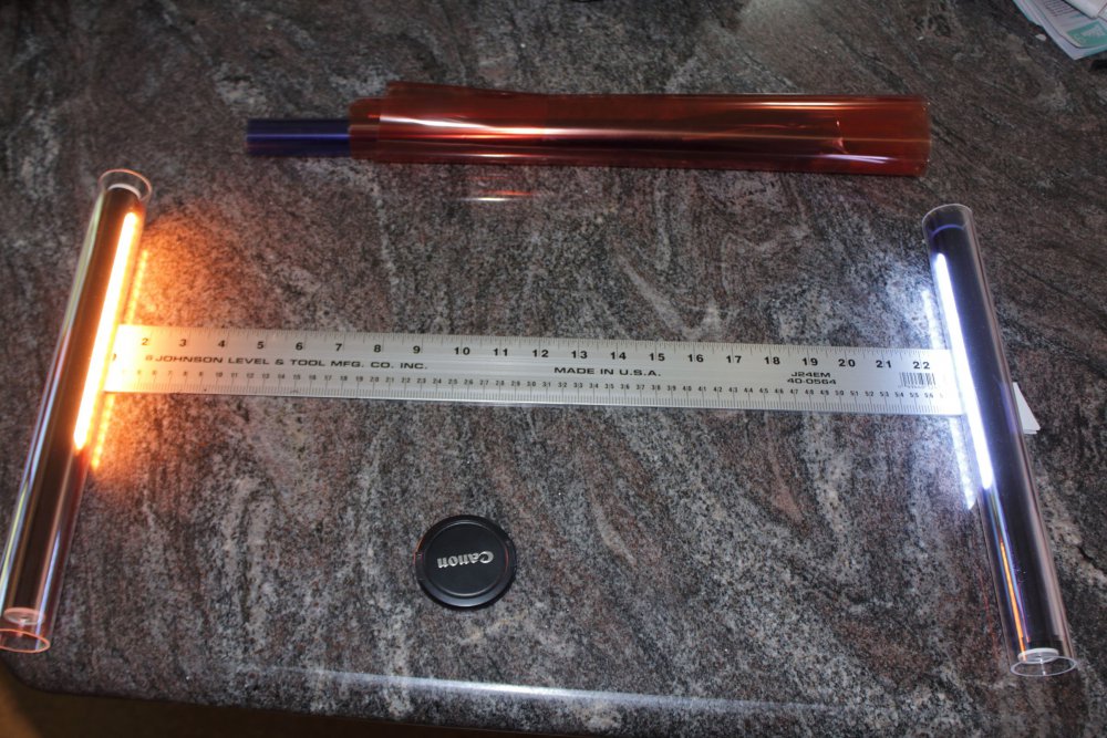 bmp4k adventuresheart0less reacted to leslie for a topic Bought two cheap led lights of Amazon a moth or so ago. Don't normally buy of amazon, had to open an account normally i get most of my stuff of ebay. However i found a review of some cheap led lights from dslr video shooter. but couldn't find them on ebay. I'm impressed they don't flicker. Been waiting for some other parts to arrive and now they have. Dust has been a bit of a problem this or last year, more to the point. So i have been thinking of how to keep them clean as i'm not big on dusting i plan on using them for accent lights. I also bought some cheap bike clamp light holders they seem to open wide enough to grip a 45mm table edge ok. Since i love the orange teal look, i bought a bunch of gel filter material and a meter long length of perspex pipe i cut the pipe into three sections long enough to cover the led lights and cut some orange and blue gel filter material to slide inside the perspex. The filter material is one and a half times the diameter of the tube. I can either use them at normal strength or turn the light 180 degrees and get a double strength filter. I plan on getting a mate to turn up some caps for the top and bottom shortly just need to measure the barrel of the charging lead hopefully its smaller than the larger of the tripod threads. I just eyeballed the bottom of the p4k rig it has provision for both thread sizes and the lead with the round charging port will fit inside the larger thread quite comfortably i think. At some point bike mount clamps may not be suitable all the time, I sort of figure i'll get some stands, with the thread on the bottom it should be easy to mount them on stands in the future.1 point