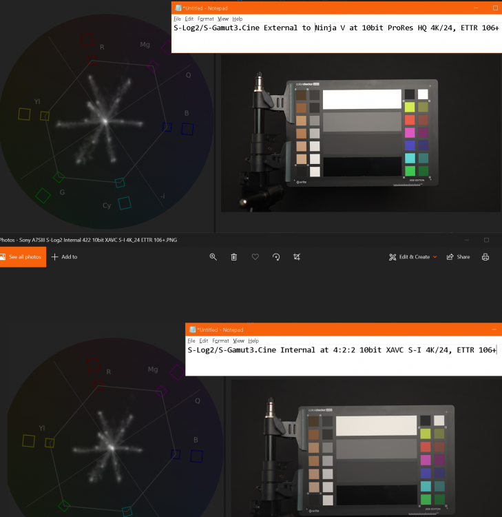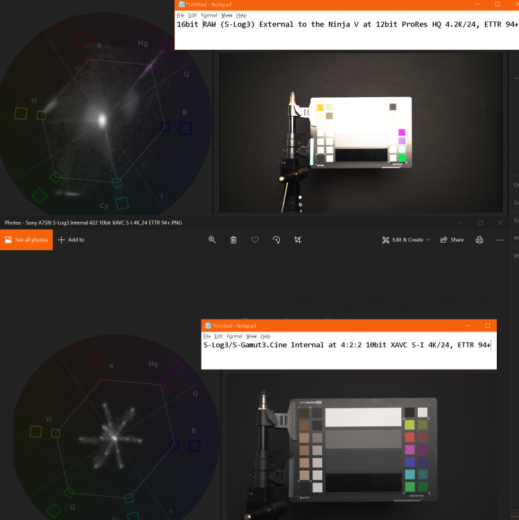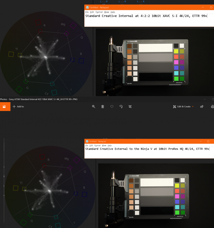 funny you mention that. I JUST finished testing the Leeming LUT's with S-Log3, S-Log2, and Standard Creative Look. In each case, I recorded internally in XAVC S-I 4:2:2 10bit and externally at 10bit ProRes HQ. I did one test with S-Log3 RAW out to ProRes RAW HQ. I exposed using Paul Leeming's latest recommendation of ETTR -1 from the already published numbers, so S-Log3 ETTR 94+, S-Log2 ETTR 106+, and Standard ETTR 99+. Something very odd happened in Premiere when using the RAW footage (using the latest Apple ProRes RAW drivers) and the S-Log3 Leeming LUT. In the Ninja V, the 16bit RAW from the A7SIII looked AMAZING (and was using the S-Log3 Leeming LUT for viewing). The internal footage came out the best of the bunch of above as far as dynamic range and color depth, but the RAW ended up being VERY over exposed. Now, I am sure it was just my inexperience working with RAW. Maybe there is something else I am supposed to do in Premiere and applying the corrective Leeming LUT made it worse. But considering the image looked so perfect on the Ninja V using the Leeming LUT as a monitoring LUT, and exposing exactly per instructions, I have to think it is something in how I am bringing it into my computer and/or Premiere? Any way, here is my results (I am starting a separate post with full details on the testing conditions and such, this is just a quick share) BTW, I also did some noise tests with lens cap and black velvet covering the lens to see the noise floor at 1/50, f/1.4, ISO 640 in the above 3 profiles In the photos below, the top is the external ProRes (one RAW HQ and the last 2 HQ) results and lower is internal XAVC S-I 4:2:2 10bit S-Log3 (top external ProRes RAW HQ, bottom internal XAVC S-I) S-Log2 (top external ProRes HQ, bottom internal XAVC S-I) Standard (top external ProRes HQ, bottom internal XAVC S-I)1 point