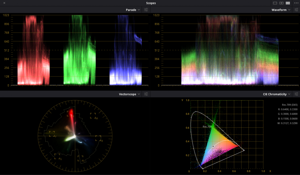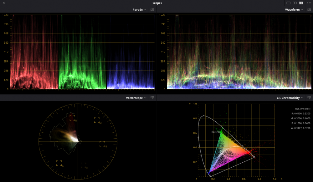 @kyeI don't think those images quite nail it. I gathered a couple pictures that fit thickness in my mind, and in addition to the rich shadows, they all have a real sense of 3D depth due to the lighting and lenses, so I think that is a factor. In the pictures you posted, there are essentially 2 layers, subject and background. Not sure what camera was used, but most digital cameras will struggle in actual low light to make strong colors, or if the camera is designed for low light (e.g., A7s2) then it has weak color filters which makes getting rich saturation essentially impossible. Here's a frame from The Grandmaster which I think hits peak thickness. Dark, rich colors, a couple highlights, real depth with several layers and a nice falloff of focus that makes things a little more dreamy rather than out of focus. And the scopes which clearly show the softness of the tones and how mostly everything falls into shadows. For comparison, here's the scopes from the picture of the man with the orange shirt in the boat which shows definite, harsh transitions everywhere. Perhaps, do you have some examples? For example that bright daylight Kodak test posted earlier here Has this scope (mostly shadow though a little brighter than the Grandmaster show, but fairly smooth transitions). And to be honest, I think the extreme color saturation particularly on bright objects makes it look less thick.1 point -