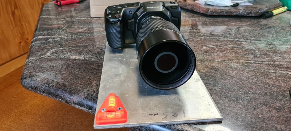 Some time ago noone was asking about long lenses. As it turned out i'd just received a canon fd 500mm mirror lens a few days before. While its its taken some time to find some traction, i finally made some progress with a base for the whole contraption. The chinese fd to mft adapter has a more than tolerable amount of play inbuilt. To remedy that i spent the morning measuring and drilling and more measuring. Surprisingly it all fitted together and adds a nice amount of rigidity, No more play. probably due more to good luck than good management. 😉 i added a bubble level i had lying around as the tripod levels are tiny dam things 🙄 Its a bit oversize yet and i have to add the samsung t5 drive to it yet plus i plan on adding a stepper motor for focusing so its an ongoing project. Its useable now, so looking for interesting subjects to video.1 point