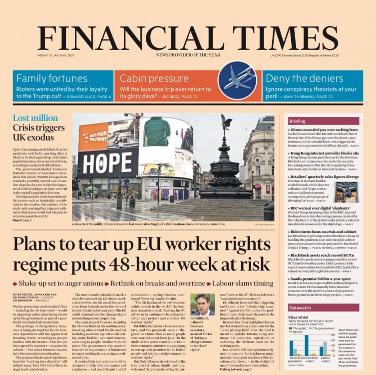 My Uncle lived in a flat on Smithdown and, yeah, the difference in how Parly looked when we were driving up it on the bus going to visit him pre and post riot was marginal 🙂 . The front page of today's FT shows the wholly anticipated direction of travel now that this government is free of those pesky EU rules. The painful economic recovery from COVID and "re-adjustment" to Brexit trading conditions will give convenient cover for the unscrupulous to exploit any sort of removal of protections. And this is only week two.1 point -