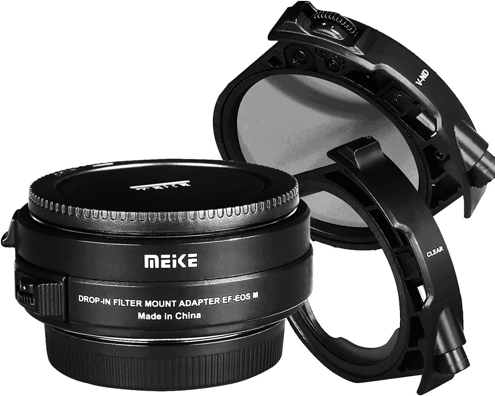 I missed this when it was announced a few months ago but Meike have released an EF>M adapter that has a drop in filter slot. It ships as a package with both the Variable ND and clear filters but also has a polariser available too and of course supports all AF and IS functionality €165, I'd say its very reasonably priced for what it will add to EOS-M rigs but of course thats all relative when it costs more than the insanely cheap prices the actual camera itself goes for these days ! I know for many people using EF lenses goes against the grain of using such a small camera but the flip side of that is that with this adapter and a compact EF-S all in one zoom like the Tamron 18-200mm or Sigma 18-250mm (both under €200 used), the EOS-M can become a stabilised, RAW shooting, pick it up and go camcorder for under €500.3 points -