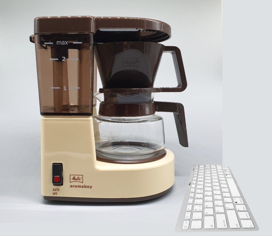 I have to say that the two images are so completely different in terms of composition and light thats its difficult to make any comparison between them. In lieu of not having a focus calibration tool, the keyboard on the desk if placed next to the coffee machine could act as an OK substitute if you place it like this crude representation. This way there will be evenly spaced and legible markers in front of and behind the focus point to compare between images. By the way, I do note from the EXIF of the A7iv file though that it appears to think the stabilisation is on ?1 point