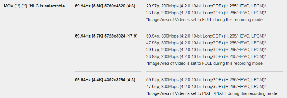 According to the G9ii specs, 4k/C4k 120p is 300Mbps HEVC. These are the open-gate specs: ...so it's 200 Mbps up to 30p 4:3 and 300 Mbps up to 60p 17:9. I've captured Olympus C4k at 237 Mbps and G9 150 Mbps 4k50p to Sandisk Extreme (non-Pro) 128MB & 256MB V30 UHS-1 cards with no problem, so 200 Mbs should be fine to a high-spec V30 card (V30 rating => 30 MBs => 240 Mbps sustained write speeds). In reality I've found the high-spec, larger capacity (128GB or larger) V30 cards are very fast, limited as much by the UHS-1 interfaces as anything else, so you may find that 300 Mbps works fine. Datasheet performance figures for a UHS-1 Sandisk Extreme (non-Pro): ...and the Extreme Pro version:1 point -