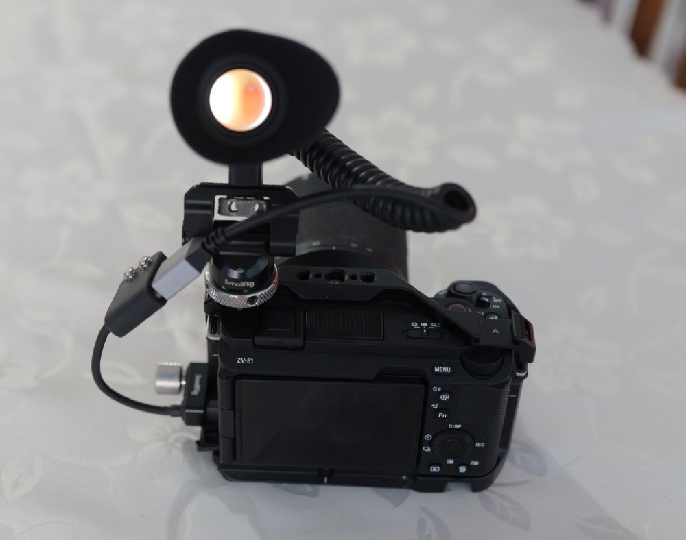 Recently saw a second hand Sony ZV-E1 on a local online market place. Price was good and I bought it. Great video camera but lacks EVF. Same is true for it's pro oriented brother FX3. Typically those type of cameras are used with external monitor on professional shoots or with camera LCD display only when vlogging. If you like EVFs and want to add one, choice is not great. No external add-on EVF from Sony like the one Sigma FP has. Portkeys LEYE III modified with better loupe is the cheapest one at 450-500 E/$ but I wouldn't call it small. Then Kinefinity EVF for 1250 E/$. Great one but definitely not affordable. There is an obvious gap and need for a relatively small, high quality, affordable external EVFs for cinema / hybrid cameras. I was looking for quite some time on AliExpress for Mini OLED displays (0.39'' to 0.7'') as a building blocks for DIY External EVF. Usually they come with controller board with HDMI input too. Almost bought some components preparing to do some 3D design and printing around them. Surprisingly found an EVF ready to be used. This type of EVFs were designed to be used with industrial instruments and were on AliExpress for quite some time. They all had lower resolution and AV video inputs in the past. For the first time saw one with 1920x1080 resolution on a 0.7'' mini OLED display and HDMI input. Also for the first time this type of EVFs is targeted toward cameras. Price was good too at 230E/$ so I decided to give it a try. Received the EVF few days ago and am happy to report that it is better than expected. Here is the list of things that I like and few that I don't like: What I Like: High resolution 1920x1080 ( equivalent to 6 220 800 dot camera EVF). Cameras EVFs have 4:3 ratio to cover 3:2 frame + some black strips on top and bottom to display information like exposure and other camera settings. The sensor on this one has 16:9 aspect ratio. To get 3:2 ratio the EVF crops the image to 1620x1080. Still great resolution at the level of ~5 mln dots EVFs like the one in Panasonic S1 series. I see in the EVF exactly what I see on the LCD screen of Sony ZV-E1 minus peaking. This is a rather good thing. Solid, all metal outer shell, good, even great quality of craftsmanship. Eye cup is big, made from rubber and fits around the eye much better than traditional camera EVFs. Big and bright screen - has at least 10 levels of brightness that can be changed and controlled manually. Picture inside looks big and bright, quite easy to see. Smooth focusing / diopter correction ring. HDMI cable is integrated, ready to be plugged into a camera. HDMI cable looks to have good quality. No need of additional power or battery. It gets small amount of power (500mA) from HDMI. This is a huge plus for me. Has mounting thread, can easily be mounted on rigs or cages or even on camera hot shoe. Can be tilted and placed in any position you want. Another huge plus. I've simply put it on monitor holder for hot shoe, which is mounted on the camera cage. EVF sits higher and is slightly tilted. It also provides 3rd point of contact and add stability. I am able to hold the camera lower and closer to the chest, which makes it more stable when shooting. Optimal size for me ! Not too small and not too big. Relatively light. Another huge plus. Optics made of glass, look high quality. Great price for what it offers - 200 Euro ($) including shipping and taxes after some Aliexpress discount. Because EVF receives its power from HDMI you don't have to switch it on separately. It has its own ON/OFF switch but if you stop the camera, EVF stops too as it doesn't receive power from HDMI. This is very convenient because it semi integrates with the camera, you don't have to switch it on/off separately. What could be better: While loupe (optics) craftsmanship is high quality, optical schema is probably not the best. Seeing tower end of the frame and in the corners is kind of difficult. In photo mode EVF has to show picture with 3:2 ratio. It crops the display at 1620x1080 to achieve this ratio. Same is true for video. This is great because this way corners of the OLED display are always cropped and dark while picture in the EVF is still high quality and resolution is still great too. So you always look at a picture which is in focus from end to end and you can see the whole of it. Brightness control has many steps but goes only in one direction. Adjusting it when you want to make picture darker or go at the opposite direction is difficult. You have to cycle trough all settings value until arriving before the setting you were a moment ago. Brightness control button is too small and uncomfortable to use. Both are not huge issues because eye cup completely isolates your eye and cuts external light at almost 100%. Once you set the brightness level you rarely need to adjust it. It doesn't have the additional tools a pro external viewfinder usually has - like peaking, False color, zebras, etc. Because it takes power from camera and becomes additional consumer, battery is drained a little faster. Hard to say how much faster. I still prefer this compared to EVF that have their own battery. Picture is not as clear as in a high quality camera viewfinder. Native camera EVF receives video stream that already has noise reduced. Image on HDMI out from the camera is more like RAW video, lots of noise in the shadows at high ISO, some noise even at lower ISO. I guess the same would be with any external EVF, even expensive PRO ones. It's not EVF's fault. I also see sometimes some texture like noise, not sure because of this particular OLED display or because of the HDMI out stream. Overall picture quality is not up to what you see in a camera integrated EVF but it is close. Surprisingly noise in the shadows helps me better judge exposure and use successfully ETTR. I live in a PAL region but camera was set to NTSC to have 24fps. There was a lot of flicker in EVF image even when only natural (sun) light was available. Maybe this