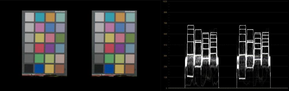 The hard part is done; its comfortably a slam dunk, so to speak. Here's a taste - this is HLG (converted to VLog) and VLog (HLG is on bottom, with equally increased saturation to demo color, and overlayed vectorscopes): The waveforms are likewise identical, and the conversion is silk, throughout the entire color space.