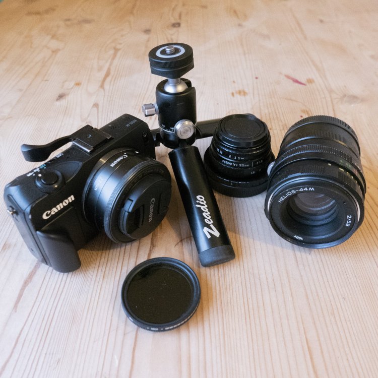 Hi All, and well done to everyone who entered - a lot of fun was had from my part. Reading through the other comments, in comparison, my choice of camera was quite unadventurous as I used my Canon EOS M that I bought for £135 at the start of the year. It came with a 35mm F1.6 APS-C Television TV Lens/CCTV Lens For 16mm C Mount Camera and C Mount adaptor and 3 batteries. I felt like I cheated because I also used two other lenses for a few shots - whereas everyone else seemed to use one lens. As you can see in the picture below, I also used a Helios 44-2 58 mm f/2 Lens M42 Mount and also a Canon EOS EF-M f2 Pancake Lens (both borrowed from work - I work in a Photography department at a Univeristy). I also used a Zeadio mini tripod and cheap variable ND filter. I shot the footage using the Prolost Flat picture profile. I think that's most of the info. Oh yeah, I did a bit of primary and secondary grading in Premiere but nothing that major. So there you go. I guess I get to keep my camera - he he! Thanks to the peeps who voted for me!
