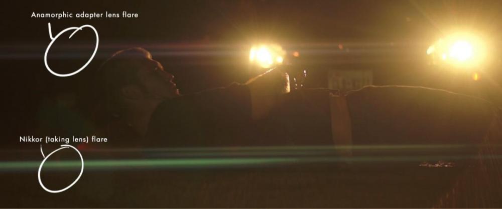 Thanks for the info, guys. tferradans, the Nikkor lens flares on their own are naturally green, and appear to simply be stretched by the anamorphic so they resemble an anamorphic flare. It's not as obvious in this still, but when I move the camera around it becomes quite clear that the green portion is coming from the nikkor as it looks just like its normal lens flares stretched anamorphically. I have tried other lenses a little and the green was gone, in that case the results looked pretty nice but it was with a very cheap fotasy lens that is basically a toy, haha. I haven't experimented thoroughly, however. I would have access to some older Zeiss prime lenses instead of the Nikkors on this project if I want them, so perhaps I should see how the flares compare. The green really bothers me, but it's also the fact that I'm getting two major streaks on the image instead of just one.