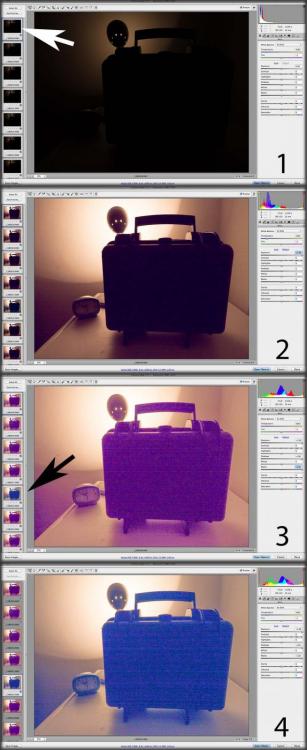 2) Make a timelapse in a room with a few light in order to obtain very underexposed images.