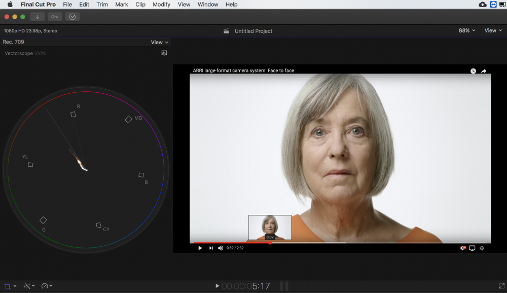 5. ? I might add that my room has yellow walls and curtains, and that the MacBook screen is like a mirror, whereas the LG reflects less than 1% of the light in the room. But Mac Performance Guide confirms the tendency toward red/yellow. Also, to the best of my knowledge, 3rd party calibration can only make adjustments in 8 bits, which is vastly inferior to calibrating the monitor itself in 12 bits. Correct me if I’m mistaken. The 27” 2017 iMac is by far better for grading, not only for the greater screen real estate, but also for its truer rendering of reds/yellows, so crucial to skin tones; though it still has problems of its own. Still no substitute for a reference monitor.