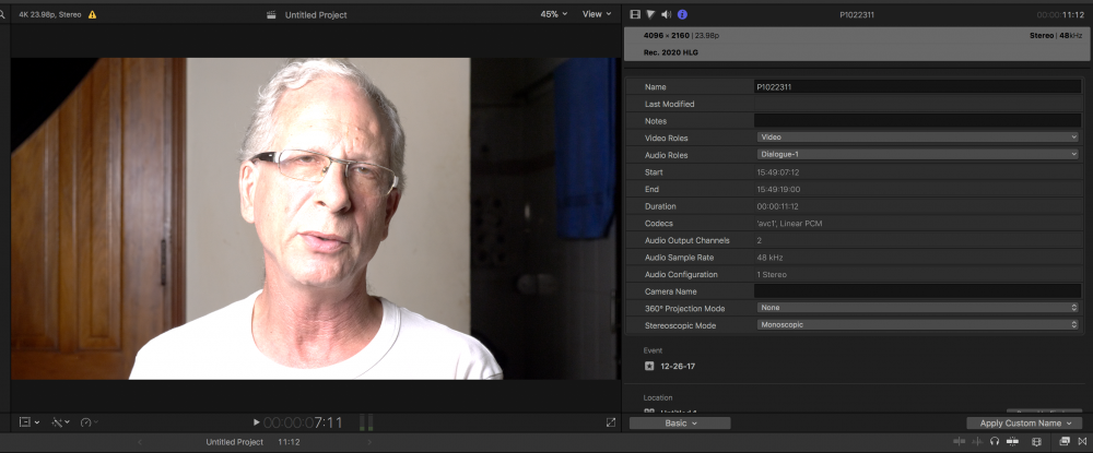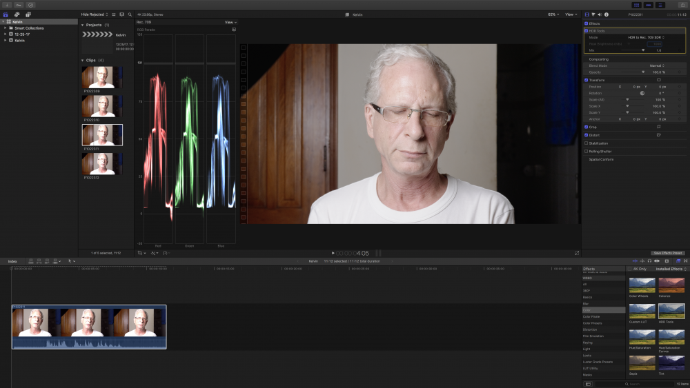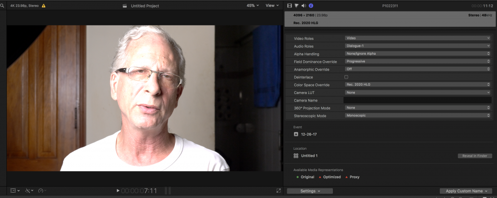 Ten days ago over at Creative Cow, Oliver Peters had this to say about the new release: Some other issues. The same stupid little UI issues that have been there for a while are still there. For example, sometimes you highlight a file name in the browser and the name field becomes blank. Then, if you fiddle with it a bit, the name comes back. This now seems to also affect the scopes, with numbers on the scale sometimes disappearing and then coming back. I'm playing with HDR a bit. First of all, you won't actually see proper HDR, unless you send HDR video out through a third party IO device to a true HDR broadcast monitor. And NO, the iMac Pro screen is NOT HDR. FCPX effectively goes into a mode where the viewer image is dimmed, as well as the AV output, so that you can do HDR work with non-HDR monitors. Unfortunately this was not carried through to filmstrips and thumbnails. Those appear blown out when working in wide gamut modes. So when editing HDR, you really do need an HDR monitor, I get that. But clips in the timeline that've been converted to rec.709 shouldn't appear blown out. So I think that even though I went through the steps several times over, the clips in my project are still rec.2020, not rec.709 for some reason. With the older version of FCP X I was running before, when I changed the color gamut, the appearance of the affected clips would change dramatically - they all became a washed out greyish-cyan color. Nothing at all happens when I change the color space in 10.4. The color space option in the pop up menu is dimmed and stuck on rec.709, unlike what I see in Apple's white paper. Oh, and I get a warning saying I need to edit with an HDR monitor!