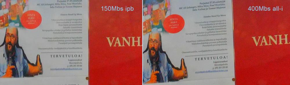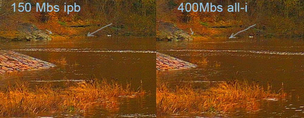 He praises 400Mbs but he dont see that 150Mbs ipb is actually better in static scene. It is like high quality JPG vs medium quality JPG. In motion it is backwards.