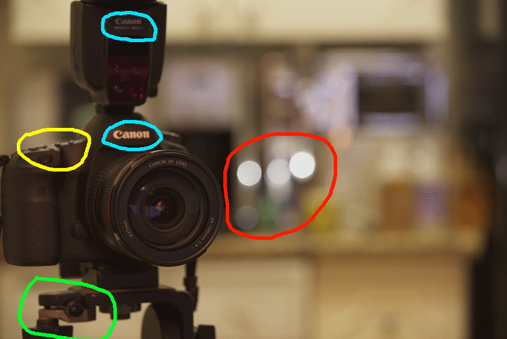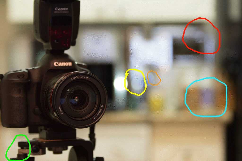 Again, nobody has yet done a conclusive, worthwhile "equivalence" test. I don't mean to sound harsh (nor to hijack this thread), but the pages you linked either lack actual equivalence tests or give dubious, useless results. The first page linked doesn't seem to contain any equivalence test -- it is just an essay titled "Sensor Crop Factors and Equivalence." If there is an actual test of DOF equivalence on that page, please point it out. The second page you linked actually contains a DOF equivalence test that seems to demonstrate that optics for larger sensors yield quite a significant difference in DOF when compared to the DOF of to smaller optic. So, it seems to demonstrate that the equivalence principle fails. I spotted the differences immediately, and I will point to some of the more obvious discrepancies. Here are the two images flashed back-to-back in a gif file: The bottle in the foreground stays sharp in both images, but look at how the sharpness of the bush and car dramatically change (red circle). Look at how the sharpness of the cast shadow and grass change (yellow circle). Look at how the sharpness of the building changes (blue circle). Does the DOF in these two flashing images seem equivalent? It doesn't seem the same to me. Now, I am not very good at making gif images, and I apologize for the rough dithering, but you can further confirm these differences yourself by downloading the two images from the linked site and switching back and forth between them in your favorite image viewer. Actually, anyone should be able to see the difference inside the red circle, merely by viewing the two images on their web site. On the other hand, I have to confess that this test is worthless. In the first place, it appears that the tester failed to eliminate the variable of in-camera sharpening, so it is very possible that one camera sharpened its entire image while the other camera didn't. More importantly, the tester put a lot of air between the foreground and the distant background. Some of the "magic" of larger format optics happens in that air between the FG and BG, but this comparison has no objects nor charts in that air to reveal what is happening to the focus there. This fatal blunder occurs in almost every equivalence test that I see. The third link that you gave is the Brightland Studios test which has been referenced by me and others on this forum in several threads. I am afraid that this is yet another misguided experiment in which the equivalence principle doesn't seem to hold up. The tester made two comparisons using the same camera and zoom lens in both tests. First he compared the equivalence between camera's full sensor read-out and the camera's crop mode: With the front of the subject sharp in both images, the apparent counter top (red circle) in the distant background,changes focus, and does not appear to be equivalent in the two images. Likewise, there is another detail in the distant background (blue circle) lacking equivalence of focus between the two test images. There seems to be other subtle focus discrepancies, that I will mention later. The tester acknowledged that the camera might apply a different degree of image processing/sharpening in full sensor mode than it would in crop mode, which could make the focus/DOF of the two test images seem more similar. So, he made another comparison, in which he shot both images in full sensor mode, but one of the images was shot optically as if it was in crop mode. That "simulated crop mode" photo was then cropped to matching size in post. Thus, in this second comparison, there was optical equivalence along with no difference in image processing/sharpening between the two shots: As you can see, with the difference in in-camera processing eliminated, there are significant areas of non-equivalence. In addition to the counter top changing, the bokeh changes size and softness (red circle), while the front of the subject remains sharp. The Canon logos conspicuously change their focus (blue circles) which happened more subtly in the first comparison, while the top buttons on the camera (yellow circle) do likewise. Part of the tripod head (green circle) also conspicuously goes in and out of focus, and it does so more subtly in the first comparison. So, the equivalence principle certainly seems to fail here, as well. However, there are serious problems with this test. For one thing he used the same zoom lens on all images. Not only does the character of the lens look the same in each photo, but aperture position (virtual/actual) doesn't necessarily change with the zoom's set focal length. So the zoom lens' aperture position probably doesn't match the differing aperture positions found on a prime lenses of the same focal length. This discrepancy could make the DOF appear more uniform than if the test were done with separate prime lenses of different focal lengths. Also, these Brightland Studios tests suffer from the same lack of any objects/charts in the important long stretch between the foreground subject and the distant background, so there is literally "nothing to see here." The fourth and fifth links you provided seem to go to different pages of the same earlier thread concerning the Kipon MF focal reducer. I am not sure what you expect me to find on these forum pages, but I do not see any equivalency tests. By the way, on page two of that very thread, I address the Brightland Studios test in several posts. I am hoping that one day someone will do a proper equivalency test with charts/objects placed at regular intervals extended behind the foreground. Ideally, one camera would use a tiny format (2/3" or S16) while the other camera would be a large format (Gonzalo Ezcurra's Mini Cyclops, the LargeSense back, or a shift/stitch adapter). Of course, a full frame camera with this Kipon focal reducer would be interesting to compare, too. -