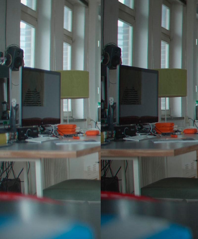 3. Sounded promising. But it seems to be more complicated. I learned that adding a shape to the rear part of the Isco means adding a front iris to the taking lens. Yes, it reduces the veiling glare/white vignetting but also adds a new shape to the bokeh! The white vignetting appears most when you open the iris to maximum. It is produced by the edge of the Iscos's front lens element (i guess it's the second) and therefore just visible on the widest taking lenses only. If the ring/shape or whatever you add to the Isco's rear part is smaller than the taking lens iris itself the shape is going to be your new iris. That means your 1.4 lens is no longer a 1.4 lens any more but a 2.8 (depends on the diameter of the shape). The picture is getting darker and sharper (more depth of field). I made a rubber shape with a 15mm diameter hole which fits best to my Isco 36 (without vignetting). See the pictures below - with and without the rubber shape. 40mm 2.0 taking lens on a GH5s with Speedbooster XL (the widest you can go) The flare pictures are made at 90cm close focus to show that it is not possible to avoid every white vignetting at this distance. You can see that the overall bokeh and exposure has changed by at least 1 stop. So at the end, is this mod useful? I don't think so … … the Iscos overall performance and look is best at f4.0-5.6. At these iris settings the white vignetting isn't that prominent. But if i had to shoot at night, wide open, facing a car's front light, on a wide shot, maybe I'd give it a try …