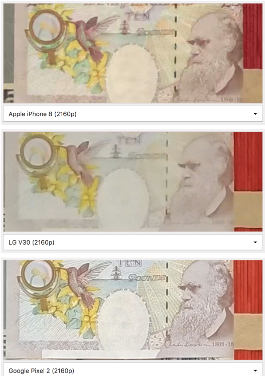 Noise + excessive noise reduction my guess. That was the low light shot from here: https://www.gsmarena.com/vidcmp.php3?idType=5&idPhone1=8573&idPhone2=8712&idPhone3=8733 But the good light image does not look much better, V30 is full of compression artifacts, so even if it is recording 10bit it is worse than many 8bit phones.