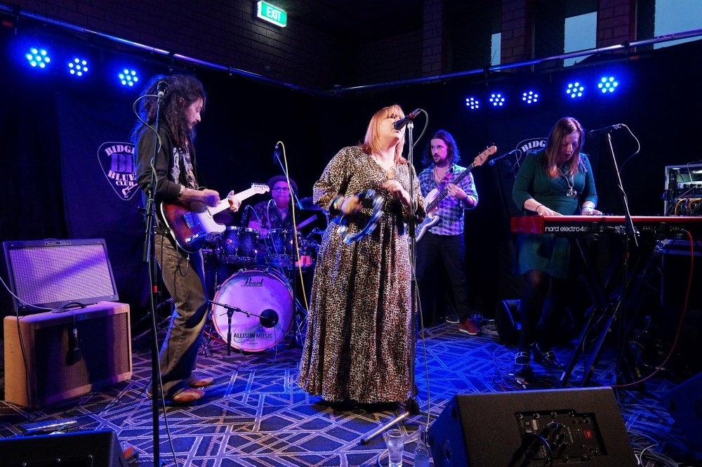 Probably ANY lens that you can find will be OK as long as it is wide enough for what you want and the light is enough for the camera to not go to too high an ISO. This was with 1.5x APSC and was a 17mm lens so about 25mm FF equivalent and about 10 feet from the nearest musicians I think. I guess it also depends on are you shooting full bands or solo artists?