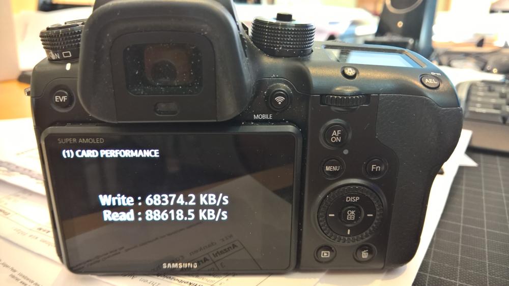 Just testet (with the tool in Dev mode) in Camera: Transcend SDXC 64GB UHD-I: Read: 68.571 KB/s Write: 37.873 KB/s Lexar SDXC 64GB UHD-II: Read: 88.619 KB/s Write: 68.374 KB/s