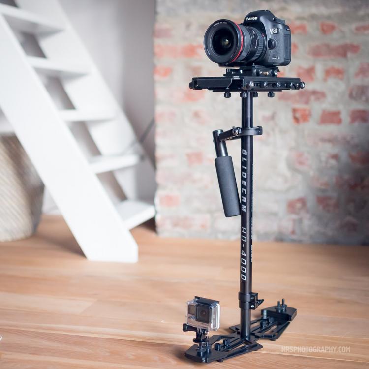 I think it's not a good idea. When everything is balanced, you must hold the gimbals handle with one hand and other hand for guide/turn the central bar (usually 2 fingers only). Look at youtube videos of Devin Graham (devinsupertramp) who is a "Glidecam Pro", that began with HD4000 and 5D mk3