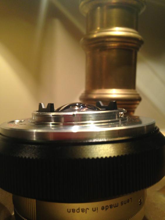 it is fully locked into, it seems as firm as its going to get. It doesnt lock in the way I can still turn it and it pops out, but if I don't turn it then it stays in fine. Its just the adapter with the lens wont go into the gh2. The adapter goes in fine but with the lens is when it doesnt work. I am getting another contax g lens 45mm to check.. Any recommendation how to get these ears off? How to saw or remove ? Thanks again!.