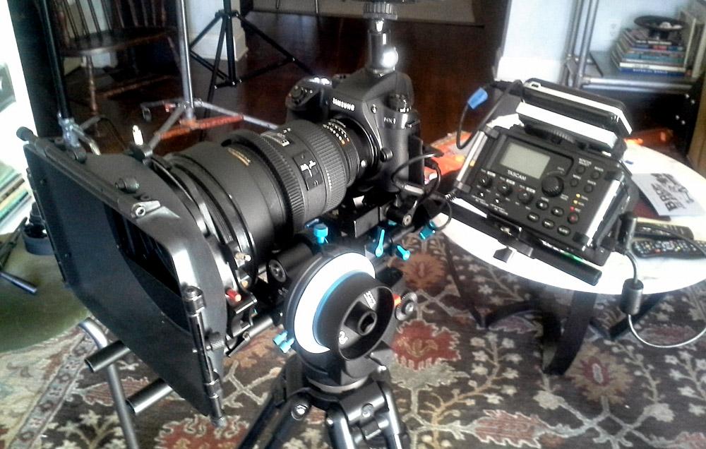 2. The do-everything rig is usually kind of overkill, especially sticking a mic on top of everything else. I opted for a really solid rails & baseplate setup (fore and aft legs between the tripod and camera plates) with a Manfrotto style release (since their release plate is widely available, it's on all my stuff from the rig to the tip of my crane). I have a rail clamp that holds the HDMI cable and camera-in (1/8), just 6" female-ended cables; that way I have a full-size HDMI out. With the NX1, I don't use the loupe, the EVF is fantastic on that thing. Sometimes have a follow focus, sometimes not. Handheld I keep the FF knob near a front handle when possible. With my Nikon, I have the Kamerar loupe which uses the Manrotto baseplate (so that's the camera baseplate) and the loupe pops on and off. I use front handles and shoulder mount that go on the rails, the fronts are wide enough that the whole thing can go on an off the tripod in seconds. I can attach the audio recorder (DR 60D) to the setup when there's no shoulder mount; I don't ever stick a mic on the camera - if I need audio for handheld, the DR goes in a waist pack for the boom op and I get a camera out cable if we can stay close. If not, the internal mic is good for synch. I have a manfrotto mount on my steadicam, so the cables come out of the jacks, the camera comes off the rails, and onto the steadicam. I keep it balanced for my wide zoom. Both the Nikon and the NX1 have audio I can use for editing if they're fed a preamped line source from the DR and if I get all the gain setup properly. The DR has a good limiter and also records a minus-6 track, and for some edits I'll need to either pop in a bit of the minus-6 for spikes, or just use the audio from the DR. I'll stick a monitor on the hot shoe if I'm on sticks. It's all pretty fast to go from handheld to sticks to steadicam, just seconds. But I don't mess around with on-camera mics and can't think of a gig where they wouldn't understand a couple hundred bucks for a boom op (I just trained a musician/friend who has good ears and a good brain to boom, he likes the extra cash). If you're recording audio, it might as well be something you can use in the edit. For synch audio, if you want to skip the camera mic, get a cheap little lav mic with an in-the-case battery, and chop the cable down to a foot or so, tape it to the front of one rail... or something. There's plenty of times I can have a recorder mounted to a boom stand with a mafer or something, and have a mic ready to place and aim to grab quick interviews.