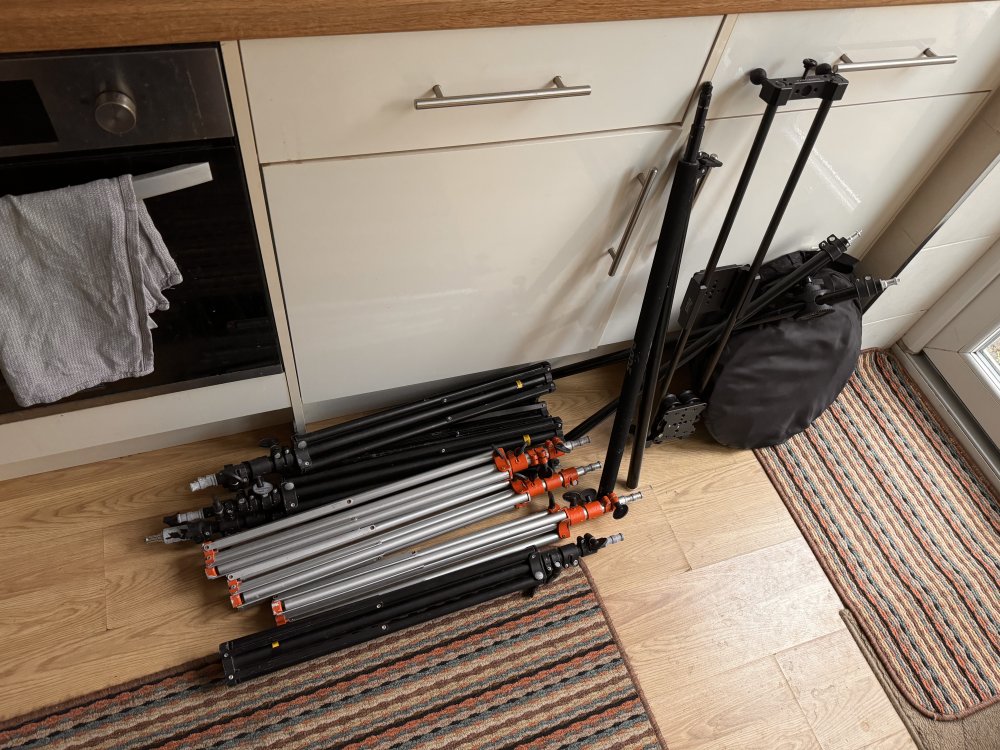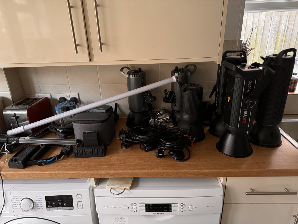 I'm doing a b-roll shoot over lunch today for one of the documentaries I'm making this year (first shoot on this one, so looking forward to it!). I haven't been able to scout the room, which is a recording/rehearsal studio, but I do know that it's very small and that the walls are lined with those acoustic tile thingies. So I'm taking: 1 x tiny Ulanzi 40W bi-colour 2 x RGB wands 2 x Lupo 20W bi-colour Smartpanels 1 x Zhiyun M20 bi-colour 1 x FalconEyes RGB panel Also a bunch of pipe clamps, spring clamps, 1/4 20 magnet plates etc, plus 2 5-in-1 reflectors, one of them folded out to black. All battery powered. I probably won't use all of these, but I wanted to give myself some adaptability given that I'm going in near-blind. The look I'll be gunning for is classic split tone so I'll be setting up a daylight wash with the 40W light and using some of the other lights for warm accents. Camera set to 4300K. All of this fits in a single standard aluminium photographer's case from which I've stripped the foam, which is good because the camera weighs about 40 tonnes!