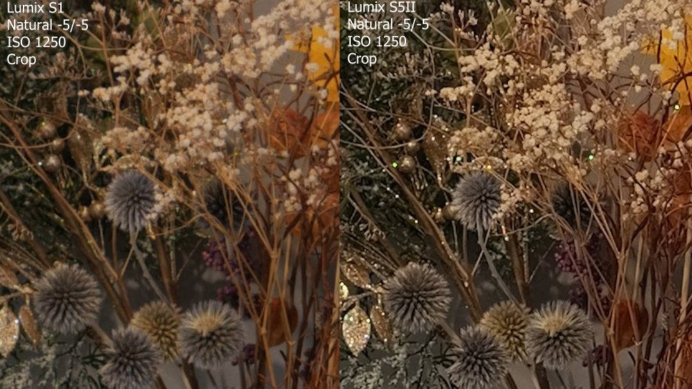 For those who are interested by the difference of the fine details rendering (internal recording) between the S1 and the S5II in 5,9K. V-Log, ISO 4000, sharpness and NR at 0, internal recording, 10 bits, same lens, same settings : The S1 has at least the same level of detail but looks more organic. The S5II on the contrary, has rougher edges. Natural, ISO 1250, sharpness and NR at -5, internal recording, 10 bits, same lens, same settings : This time the difference is much worse with the standard profiles, it looks like smartphone footage, of course there are more details than on smartphone (even with 8K smartphone), but they are really over-sharpened. On the S5II, I never use 4K and C4K because they are even worse, especially with the standard profiles. But using the 5,9K/6K or Open Gate mode decrease the IBIS performance, it's very noticeable while walking (of course ambassasors never test the IBIS with these modes). I really hope the rumored S1II and S1HII will improve the video engine of the S5II. -