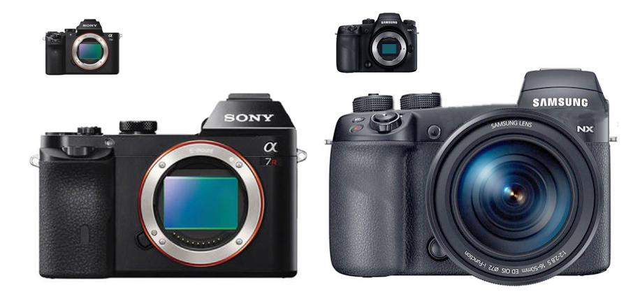 Thanks to the Panasonic GH4 and Sony A7, mirrorless cameras are becoming a must for stills and 4K-video recording, they no longer have to mimic the DSLR look (roofprism over the lens in central position) to be seen as serious pro cameras. Since there is no optical problem to slide the eyepiece to the left side of the camera (the Leica M position), it is now possible to let the left eye see the scene being filmed. (as a bonus this prevents the operator's nose to oil the monitoring screen...) Note that in order to avoid the camera housing to become a barrier between the filmmaker and his subject, professional video cameras (by following the Aaton LTR and Arri SR structure) all moved their wiewfinder eyepiece toward the lens-port plane, at a short distance of the lens axis. I hope Canon's designers and others will remember this point when redesigning their DSLRs into mirrorless cameras. Photoshoped picts of the NX1 and A7 show the eyepiece left position 'cleans' the upper desk, giving more room for the right hand to rotate the setting crowns (e.g. ISO) while filming.