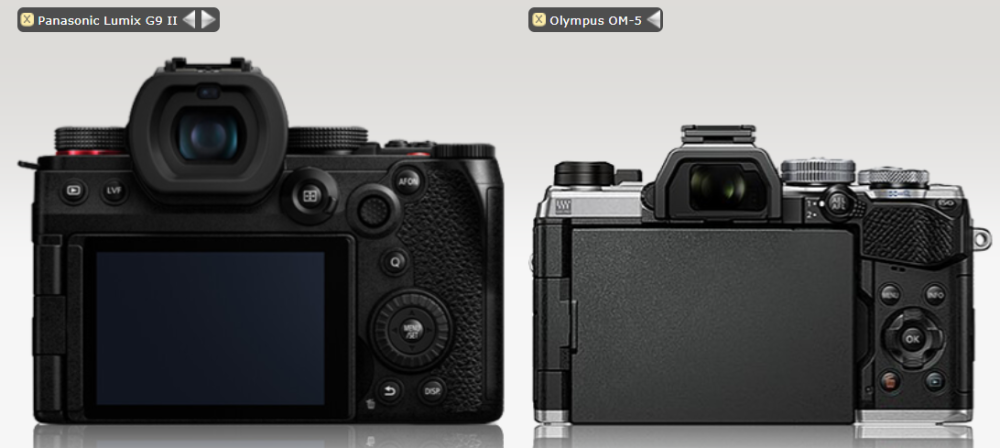 The G9 ii is much larger and over 50% heavier than an OM-5: The obvious M43 alternative (larger and heavier, but not as bad as the G9 ii) is a used OM-1 - almost a steal at it's current sub-£1000 used prices in the UK for what you get in a rugged, weather-sealed, reasonably compact body. And of course as MrSMW said, there's the S9 at sub-£1000 new, but that's not weather-sealed nor has an EVF. It's the lack of a compact M43 body with PDAF, 4k50/4k60 and excellent video IBIS that drove me to buy an S9 - my first ever non-M43 MILC (after 13 years of buying M43 cameras and owning a sizeable lens M43 collection). That said, the E-M5iii/OM-5/OM-5ii series aren't really aimed at the video-user market - they are primarily lightweight, small, weather-sealed stills-orientated cameras with a bit of retro style (which is an OM-System self-confessed niche, really). -