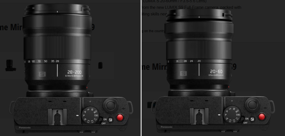 Panasonic UK have two S9 kits listed on their website, one with the 20-60mm f3.5-5.6, the other with the 28-200mm f4-7.1 Macro OIS lens (but no price as yet for that kit). Comparing the sizes of both on the S9, the 28-200mm kit looks like it might be a nice FF travel cam combination at just under 900g total weight including battery. According to Panasonic W x H x D is 126 x 73.9 x 140.1 mm with the 28-200 (the 20-60 is just 6mm shorter and 63g lighter): Amateur Photographer magazine in the UK has estimated the length of the upcoming compact 18-40mm F4.5-6.3 at around 40mm, which is about half the length of the 20-60mm.