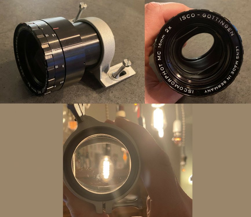 Dear friends, Andrews expertise, Titos enzyclopedia and Seb Farges wealth of information, all three are gulity of putting me into the situation, many others have faced. Being lured into the pleasures and madness of anamorphic adapters. So, @Andrew Reid, @Tito Ferradans, @Seb Farges and all you other kewl cats, I appreciate your take on this. I was fascinated by the elegance of a Baby Hypergonar from Sebs video and I figured, the best mix for me would be small size, an admireable image with plenty oddities though of course with hopefully acceptable shortcomings in image quality. Then some time ago I read about the Icsomorphot 8 1.5 on Eoshd. For months I tried to find one for a small amount of money:) but it never got any less than 350EU. Then, I came across some information about an Iscomorphot 16 2x with nice attributes regarding size and image. Point is, I bought an Iscomorphot 16mm 2x which is different than the 16 without the "mm", which stands for Millimeter, the European metric. Did I buy some useless piece of optics? What is your take on it? Oh, and it has some fungus it seems.. Here are the pictures from the seller I bought it from.