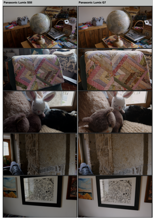 24. People might laugh at me, but I don't care. I've been doing some walk-around filming with my G7 and 9mm Leica versus my S5ii and the kit lens. I'm absolutely dumbfounded how little the differences are. Here are my settings: Panasonic Lumix G7 - 4k 25fps (EOSHD ProColor Settings, with minor tweaks), super-fast stabilization in Final Cut (InertiaCam- smoothing (.1), continuous video AF on with it's small box in the center (yes, that's right and it didn't really hunt), A Mode, Auto ISO, handheld only, AWB Panasonic Lumix S5II - 4k 25fps (Stadard profile), no stabilization in post (but had IBIS on), continuous AF (mode 2), small box in the center, A Mode, Auto ISO, handheld only, AWB I kid you not, the images were very similar, minus the color which seemed better on the G7 to my eye. After stabilization, there was little difference. Here are some stills: It would appear the 2015 G7 is still the little engine that could. It weighs a whopping 540g less than the S5II and kit lens. I could add the 14-140, the 25 f/1.4 and perhaps a recorder or mini tripod for that difference. This is where M43 needs to go in the future: small, excellent value, with great features like 4k, PDAF, IBIS, 10 bit h.265, with a proper shutter and hot shoe. Even the previous generation(s) from 2015-2018 have so much to offer.
