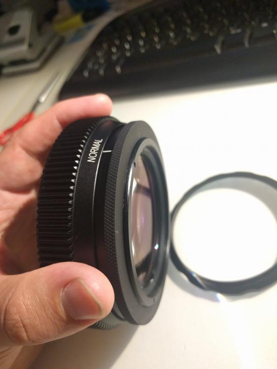 Heads up to users of the 72mm version of the SLR Magic Rangefinder (the discontinued one without distance markings)... The rear 72mm attachment ring on mine had some rotational play. I decided to see if I could remove it. I succeeded, turned out the connector was a step ring glued on! Underneath a 77mm thread, just like the one with distance markings. See pictures. Trying to remove the step ring (at your own risk ;-)) might be worth it as it brings the RF closer to the attached anamorphic glass, benefiting vignetting. Conclusion: both versions of the Rangefinder are mechanically the same. The budget version just misses distance markings and got a step ring tacked on (!).