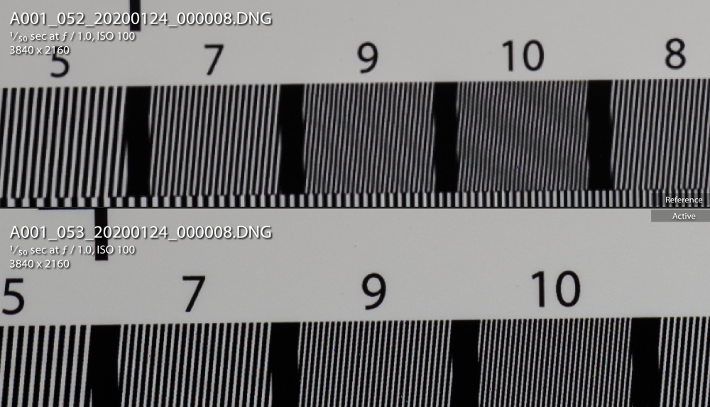 Second attempt as i had uploaded the wrong images before. So long short short, i was testing resolution of 6k vs FF UHD to check the level of aliasing. The only chart i had was an old one i'd printed off myself many moons ago but should be enough to create issues (but i really need to find a better way...) But i can clearly see 6K still vs scaled UHD but what i found interesting is if you switch to DC mode i am pretty sure you're just getting a 1:1 crop of the sensor in UHD - it looks similar to the 6K. Either way the DC UHD RAW mode is much clearer than the FF. But i need to do some better tests but try it yourself and see what you think. cheers Paul So top is full frame UHD and lower is DC UHD, see how much clearer the lines are -