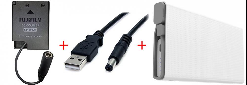 Since i dont want yet dive into DIY solution. Any thoughts on this scheme? CP-W126 (http://www.fujifilm.com/products/digital_cameras/accessories/batteries/index.html#coupler) + qualcomm 3.0 power bank through usb-dc adapter. There's also posibility to use any 5V powerbank and usb-dc 5Vto9V converter but qualcomm 3.0 seems like better solution ( thats a technology that lets chargeable device decide itself how many A/V it needed)