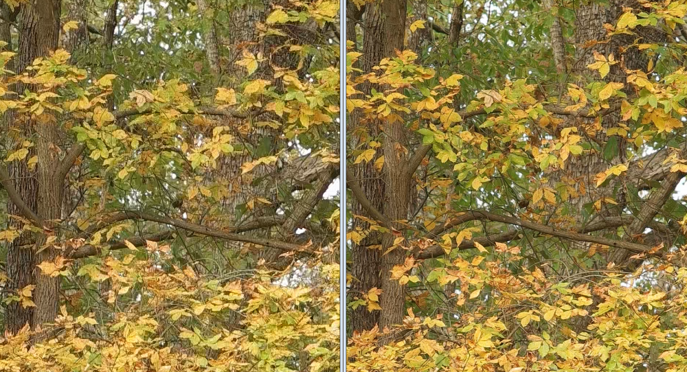 I tried to get sharpness to match to make them visually more even, one is upscaled and one is native. Easy to spot if you look close but not too bad.